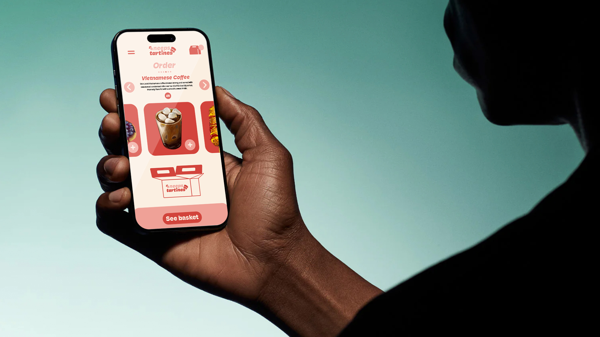 The branding embraces a lively, whimsical spirit that reflects the joy and creativity of baking. It blends two illustration styles: one modern and quirky, the other more realistic to both capture the personality of the brand and show off the tasty treats you can order through the app.