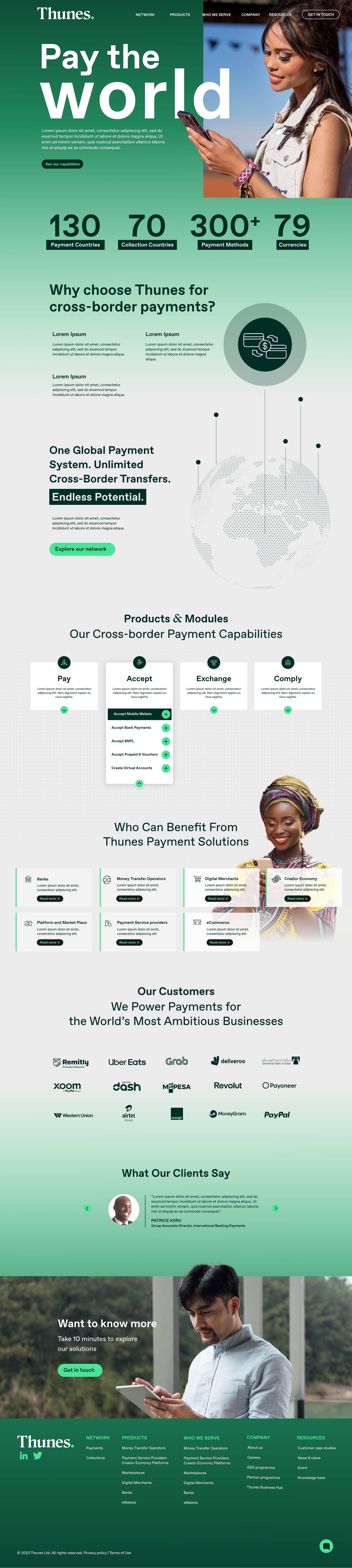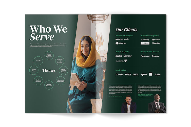 Thunes transcends borders and removes payment barriers with innovative technology and creative solutions. By connecting businesses, brands, and individuals globally, Thunes facilitates seamless transactions for all.